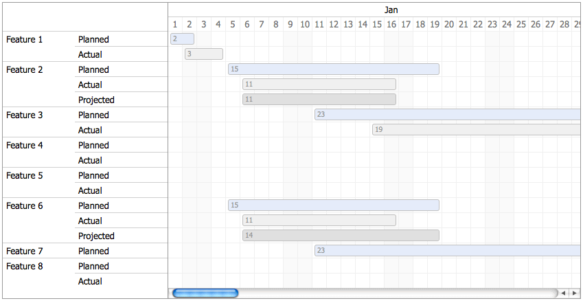 jQuery Gantt Chart — простой в использовании плагин, реализующий функциональность диаграммы Ганта как jQuery-компонент. Он способен: