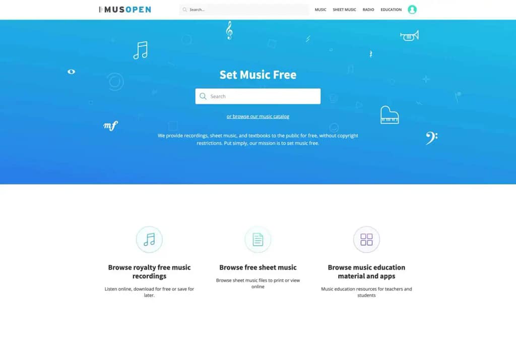 Musopen — это бесплатный сайт, который предлагает доступ к большой коллекции свободной музыки, включая классическую, джазовую и народную музыку. Вы можете использовать эту музыку в своих проектах без ограничений и оплаты. Однако, их библиотека не так велика, как на других сайтах, и качество записей может быть ниже, чем на платных сайтах.
