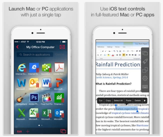 Parallels Access делает все немного по-другому, предоставляя вам полный доступ к вашему рабочему столу и используя свою специальную технологию «Applification» для визуализации ваших настольных приложений как собственных приложений, что делает их намного проще в использовании на ходу, а также гарантирует, что вы можете работать без подключения к интернету.
