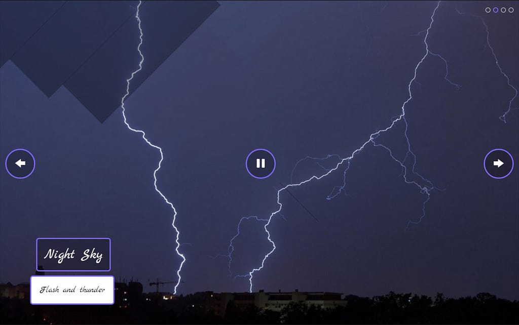 Это демонстрационное слайд-шоу очарует своей пользовательской ориентированностью и отзывчивым дизайном. Оно показывает красочную вечернюю природу, успокаивающую любого, кто смотрит на его закатные изображения. Пользователь может продолжить просмотр или вернуться назад, нажав на нижние-правые или верхние-левые стрелки, а также на кнопки предварительного просмотра в нижней части. Этот шаблон слайдера называется Angular. На нем вы увидите небольшие картинки для пропуска слайдов и перехода к конкретному слайду, который вы хотите посмотреть.