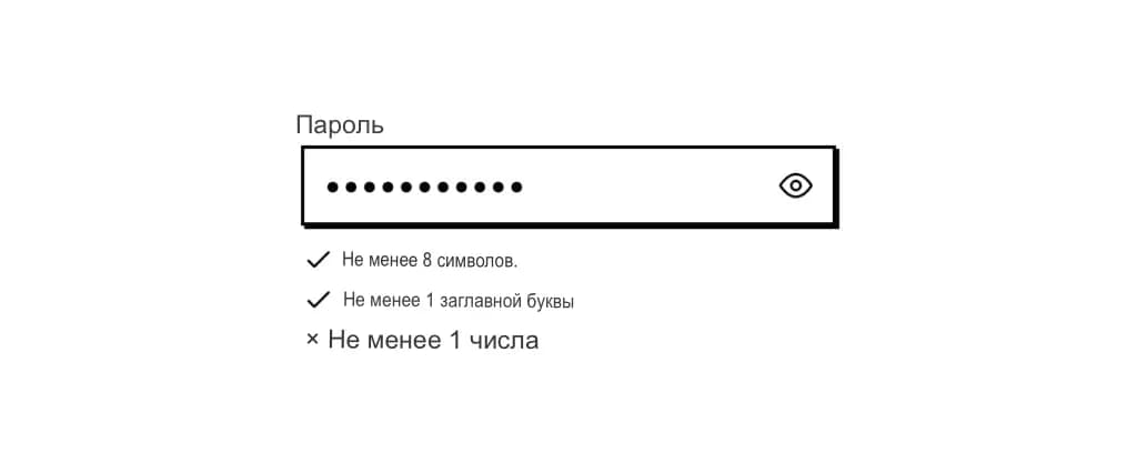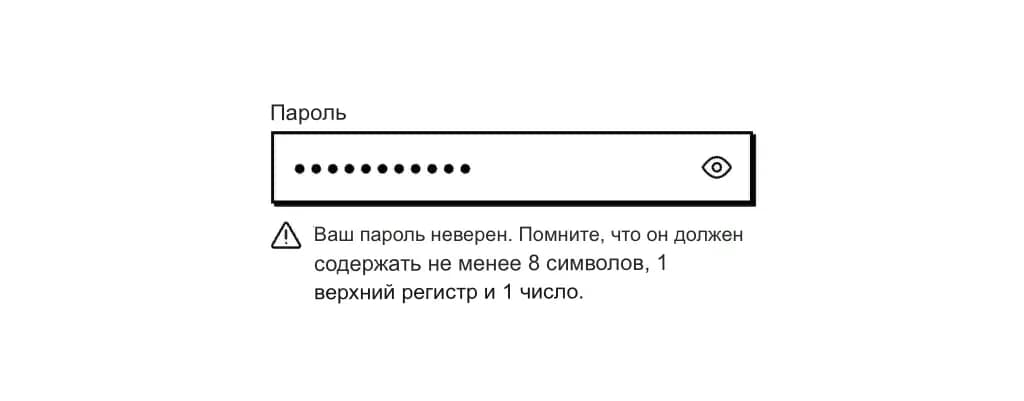 Первое, что нужно сделать, чтобы избежать ошибок, — это предоставить пользователям возможность видеть символы, которые они только что ввели в поле пароля. Эта функция часто представлена значком «глаз» справа от поля.